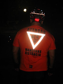 Moro numa confluência de binários, vias de direção única dispostas paralelamente entre si. A avenida aqui em frente é um dos corredores perimetrais de Recife e por ela passam centenas de ônibus todos os dias. A noite, entre 18 e 19h, o fluxo de veículos é caótico, e muitas vezes, engarrafa o tráfego entre dois sinais. E nestes horários de pico, também passam dúzias de bicicletas todos os dias. Este é um dos horários mais perigosos para se pedalar na avenida e é comum que passem ciclistas sem um pingo de preocupação quanto a sua visibilidade. Ser visto pelos carros e ônibus é a única garantia que temos de pedalar com alguma segurança no tráfego. Mas muitos pedalam com bicicletas escuras, vestidos de cores escuras e sem luzes, refletivos, lanternas ou qualquer outro ítem básico que garanta a sua visibilidade. Afora o fato de que refletores e "olhos de gato" são itens expressamente colocados no Código de Trânsito Brasileiro - CTB (art.105,VI), a grande maioria dos usuários de bicicleta para o trabalho nem ao menos sabe ou se importa com isto. A noite, todos os gatos são pardos e estão entregues a sanha estressada dos motoristas cansados e frustrados em engarrafamentos contínuos. A noite é da besta! E só Deus consegue entender porque não morrem mais ciclistas na cidade abandonada por nossos gestores do tráfego.